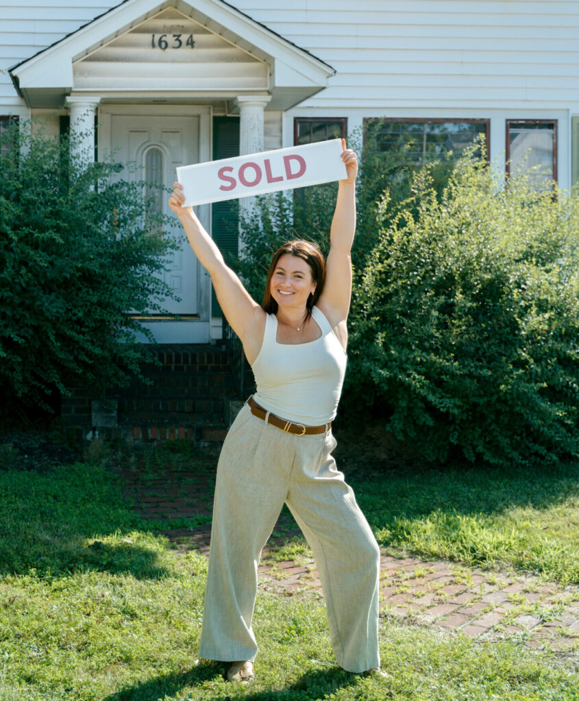 Lindsay Connelly, president of Linden Digital Marketing, proudly showing off the SOLD sign on the agency’s first physical location on Monroe Avenue in Brighton.